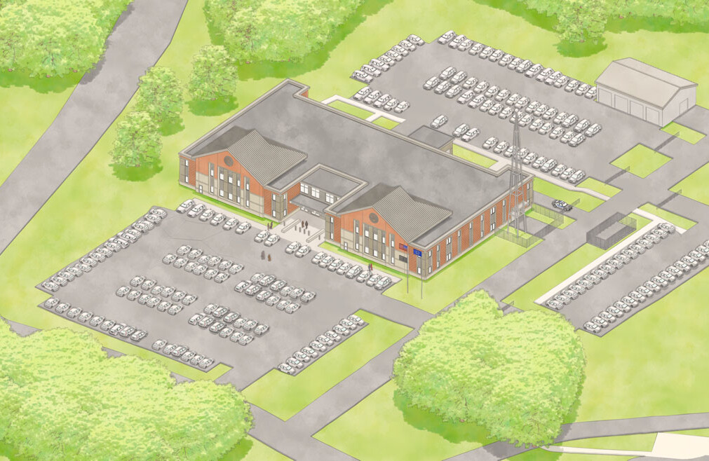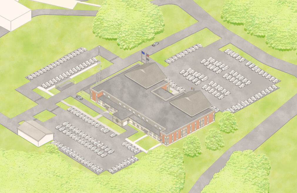 The proposed courthouse consolidates a wide range of County functions, including the Sheriff’s Office, Dispatch and Communications, NH DOC Probation and Parole, the Bar Association, the County Attorney’s Office, the Register of Deeds, the Maintenance Department, the NH DMV, and the NH Judicial Branch. Judicial functions include two Jury Courtrooms, one Circuit Courtroom, Judges’ Chambers, Clerk spaces, Jury Assembly, meeting rooms, public lobbies and waiting areas, as well as defendant holding areas. Security was an essential part of the design, emphasizing clear separation of vehicular and pedestrian traffic, controlled screening at the main entrance, and distinct circulation paths for staff, court officials, and defendants.