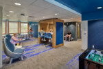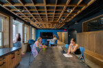 Through collaboration with the university, student life, and residents, it became clear that the renovation needed to prioritize accessibility and spaces that promote connection. The design thoughtfully balanced in-demand single and double room layouts with spacious common areas on each floor, encouraging students to spend time outside their rooms and engage with one another. New features like a community kitchen, indoor lounge, and outdoor patio further support a strong sense of belonging and social interaction.