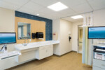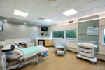 The most recent renovations include 8 additional LDRP rooms. The Concord Hospital team was eager to renovate the LDRP rooms to improve patient experience and enhance staff efficiency. The existing rooms were redesigned to have designated family and staff areas. Additional storage and lighting levels were added to increase comfort of the patient and their family. A designated staff work area was incorporated into the layout at the entry to each room. Each room received new modern finishes in a serene palette, increasing cleanability and promoting calmness.